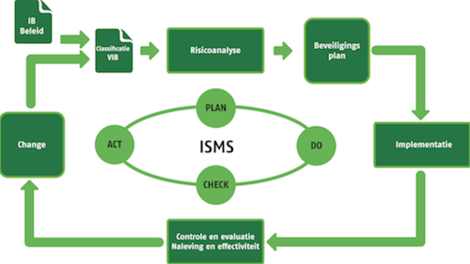 Het ISMS vormt binnen de informatiebeveiligingsorganisatie het kwaliteitsproces rond (de inrichting van) informatiebeveiliging. Het proces omvat typisch de stappen Plan, Do, Check en Act (PDCA-cyclus). Vanuit deze fasen kun je de diverse activiteiten om te komen tot passende informatiebeveiliging periodiek en in onderlinge samenhang uitvoeren. Vanuit de diverse fasen kunnen er uiteraard projecten worden geïnitieerd om tot uitvoering van de activiteiten te komen.