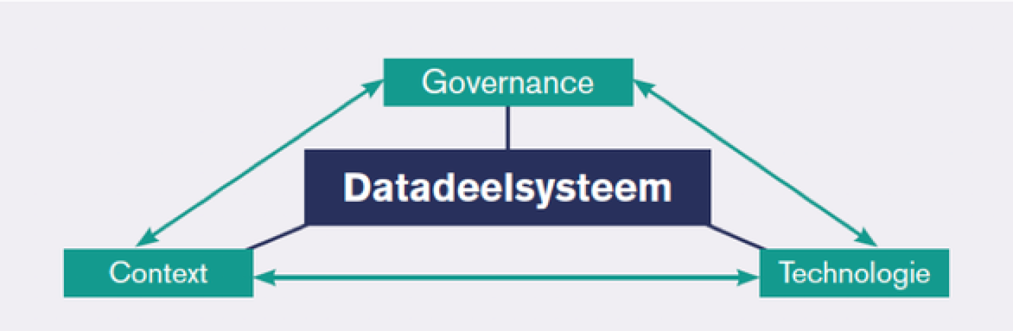 De wens om meer data te kunnen delen, op een veilige en vertrouwde manier, stelt eisen aan de techniek zodat verschillende computersystemen onderling kunnen communiceren. Datadeling is echter niet enkel een technologisch vraagstuk. Het vereist ook dat er afspraken worden gemaakt over de rolverdeling, kostenverdeling en besluitvorming (kortom de governance). Zowel de technologische als governance laag zijn daarom relevant bij het beschrijven van hoe datadeling tot stand komt. Deze staan echter niet op zichzelf, maar worden beïnvloed door de context zoals wet- en regelgeving of de belangen van partijen die data delen. Wanneer die belangen sterk uiteenlopen, zal besluitvorming wellicht complexer zijn dan wanneer er doelconsensus is. En wanneer datadeling gewenst is, vanwege een sterk publiek of economisch belang, maar niet van de grond komt, kan de overheid datadeling stimuleren. Door bijvoorbeeld het opstellen van wetgeving, verstrekken van subsidies of door het zelf te organiseren.