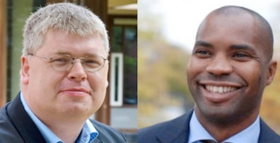 Frank van Oort, hoogleraar Stedelijke en Regionale Economie aan de EUR en Brian Benjamin, programmamanager smart city van de gemeente Den Haag.
