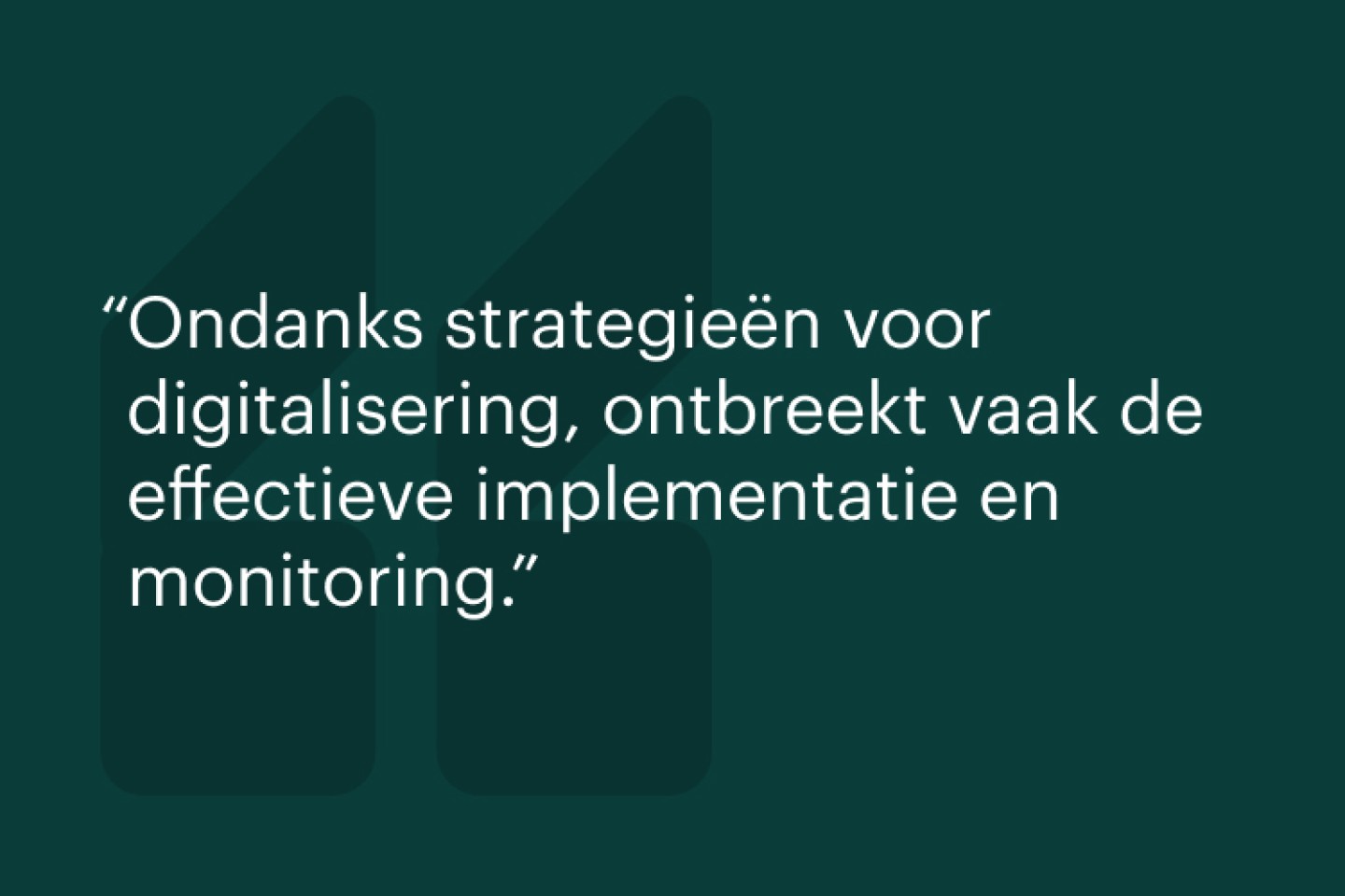 - Effectieve implementatie en monitoring Ondanks strategieën voor digitalisering, ontbreekt vaak de effectieve implementatie en monitoring. Overheden moeten duidelijke verantwoordelijkheden vaststellen en voortgang monitoren om impact te waarborgen en vertrouwen te behouden.