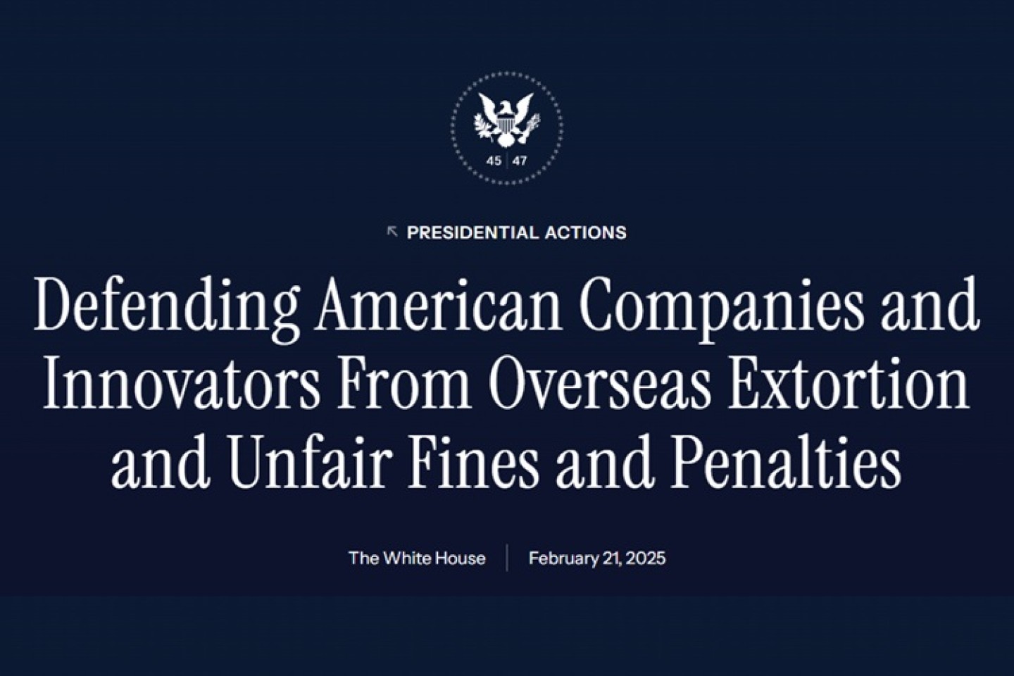21 feb 2025 stelt Trump in een memorandum dat big tech zorgt voor innovatie en inkomsten voor Amerikaanse burgers, maar dat dit wordt gehinderd door extra-territoriale regelgeving van met name de EU. Specifiek doelt Trump hiermee op regelgeving als de DMA en de DSA. Inmiddels heeft de EU boetes uitgedeeld aan Apple en Meta op basis van de DMA. Maatregelen op basis van de DSA laten nog op zich wachten, en liggen gevoelig gezien de geuite dreigementen van Vance over sancties richting X.