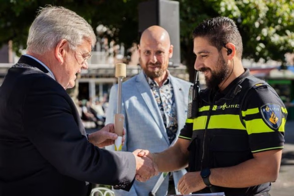 Naast Kariebo ontving ook Jurriaan Raaijmakers, ambassadeur van Digitaal Veilig in de Wijk een Veiligheidsfakkel. Met dit initiatief zeggen vrijwilligers en soms ook wijkagenten zich samen in om kennis over digitale veiligheid te delen met wijkgenoten en bedrijven.