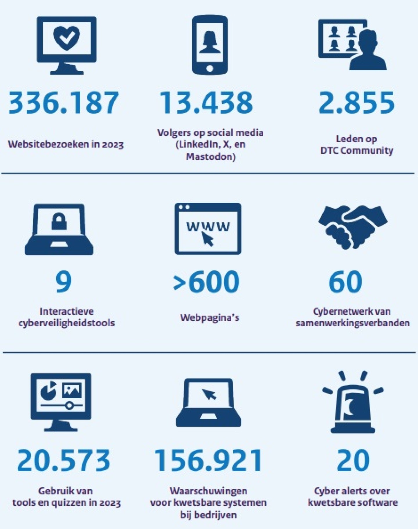 DTC blikt in haar terugblik op 2023 tevreden op alle activiteiten die in het teken stonden van gedragsverandering met onder meer interactieve tools voor basismaatregelen zoals CyberVeilig Check, onderzoeken zoals de DTC Benchmark, adviezen en bewustwordingscampagnes op gebied van security-maatregelen.