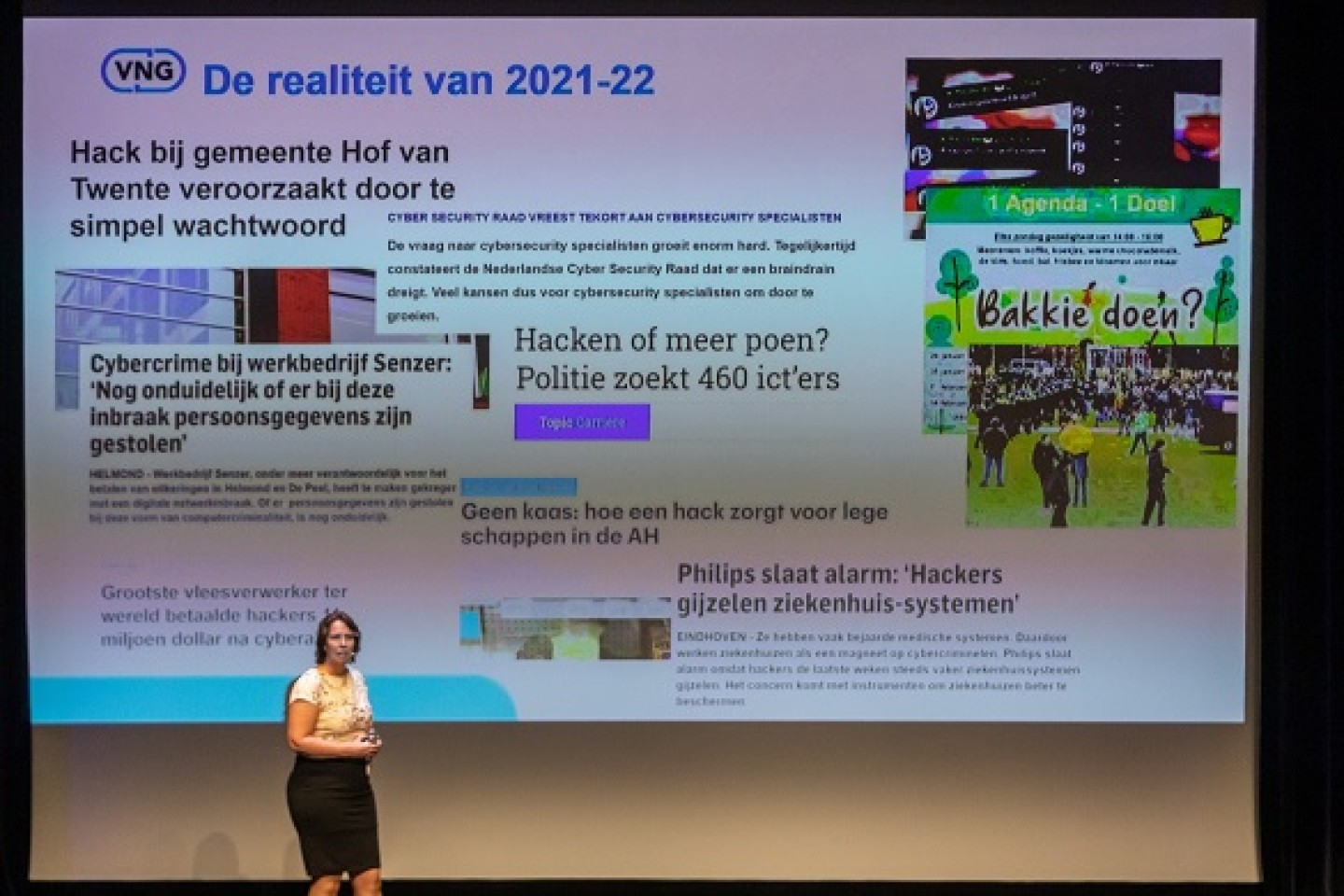 Doel van de agenda: de cyberveiligheid van de 344 gemeenten op orde krijgen, voorbereid zijn op digitale incidenten en -crises en inwoners en ondernemers weerbaar maken tegen digitale criminaliteit. De agenda kijkt naar alle gemeentelijke aandachtsgebieden, van de zorg en het sociaal domein tot het beheer van de openbare ruimte. De VNG hamert erop dat ICT-beveiliging niet alleen een bedrijfsvoeringsissue is. De vorig jaar op de algemene ledenvergadering aangenomen Resolutie Digitale Veiligheid moet het onderwerp bij bestuurders en raadsleden tussen de oren te krijgen. Gemeenten moeten voldoende budget voor blijvende weerbaarheid tegen cyberdreigingen vrijmaken, het onderwerp regelmatig agenderen in het college en jaarlijks een overzicht van ICT-incidenten met de Informatiebeveiligingsdienst (IBD) delen. “Digitale veiligheid is chefsache geworden”, stelt Vierbergen, die nog een paar actiepunten noemt: benut de verplichte ENSIA-rapportage aan de raad om te sturen op je ICT-veiligheid en neem digitale veiligheid op in het Integrale Veiligheidsplan van je gemeente. En vergeet intussen ook je belangrijkste externe partners in de strijd tegen cybercrime niet: de politie en het OM, het NCSC en (richting je ondernemers) het DTC. Al zijn er nog veel witte vlekken, geeft Vierbergen aan, bij de aanpak van het online aanzetten tot ordeverstoringen en digitale criminaliteit, zoals het spanningsveld rond privacy: wat mag een gemeente wel en niet?