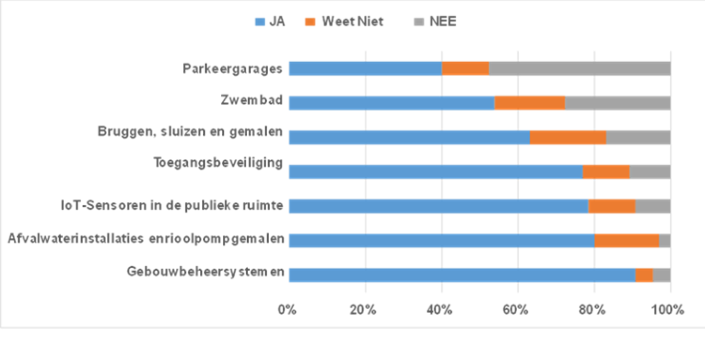 Elke gemeente draagt verantwoordelijkheid voor het beheer en de beveiliging van uiteenlopende typen geautomatiseerde toepassingen in de openbare ruimte. In figuur 1 is het gebruik van een aantal toepassingen van gemeentelijke automatisering in de openbare ruimte weergegeven.