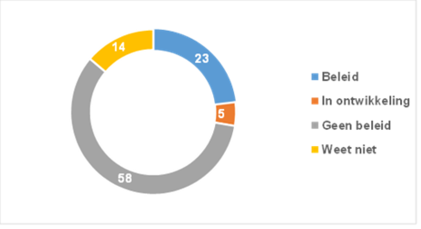 Iets meer dan een kwart (28%) van de respondenten geeft aan dat zij beleid, procedures en plannen hebben, die gericht zijn op het beveiligen van geautomatiseerde toepassingen in de openbare ruimte, of dat ze hier momenteel aan werken (zie figuur 2). Het merendeel van de respondenten (58%) laat echter weten dat er hun gemeente op dit gebied geen beleid, procedures of plannen heeft, of dat ze hier niet van op de hoogte zijn (14%). Gemeenten die wel beschikken over beleid, plannen, of procedures zijn groter (gemiddeld 130.000 inwoners) dan de gemeenten die daar niet over te beschikken (gemiddeld 74.000 inwoners).