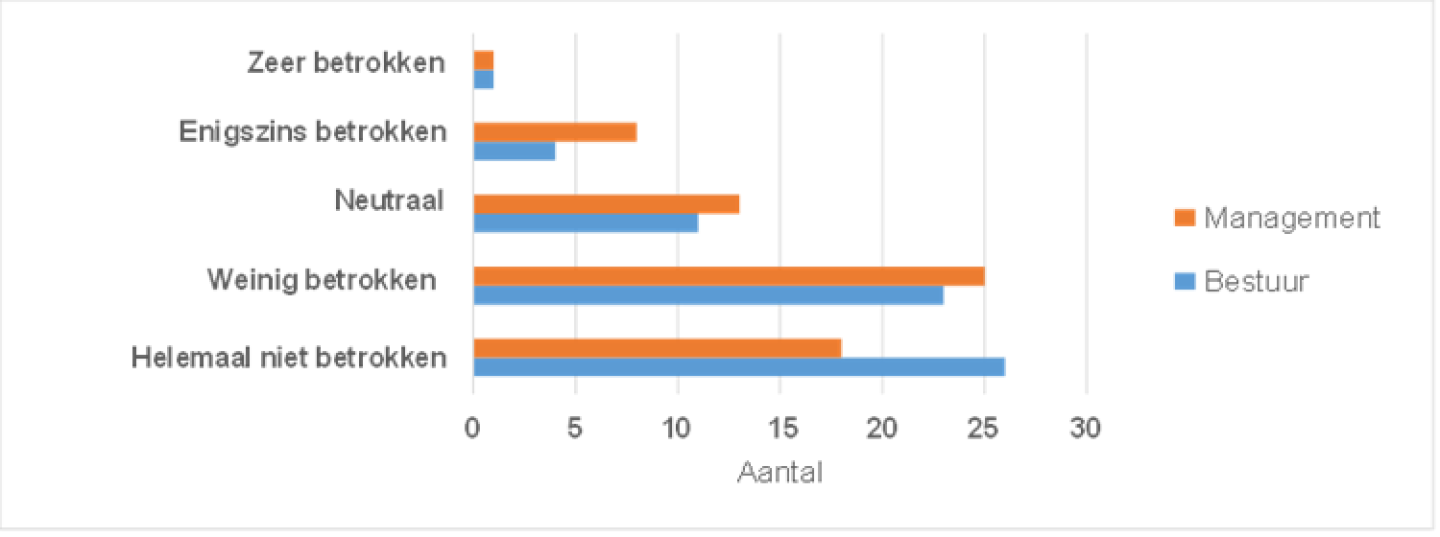 Figuur 4 Mate van betrokkenheid van bestuurders of managers van de eigen gemeente bij het inrichten van de cyberweerbaarheid van de gemeentelijke automatisering