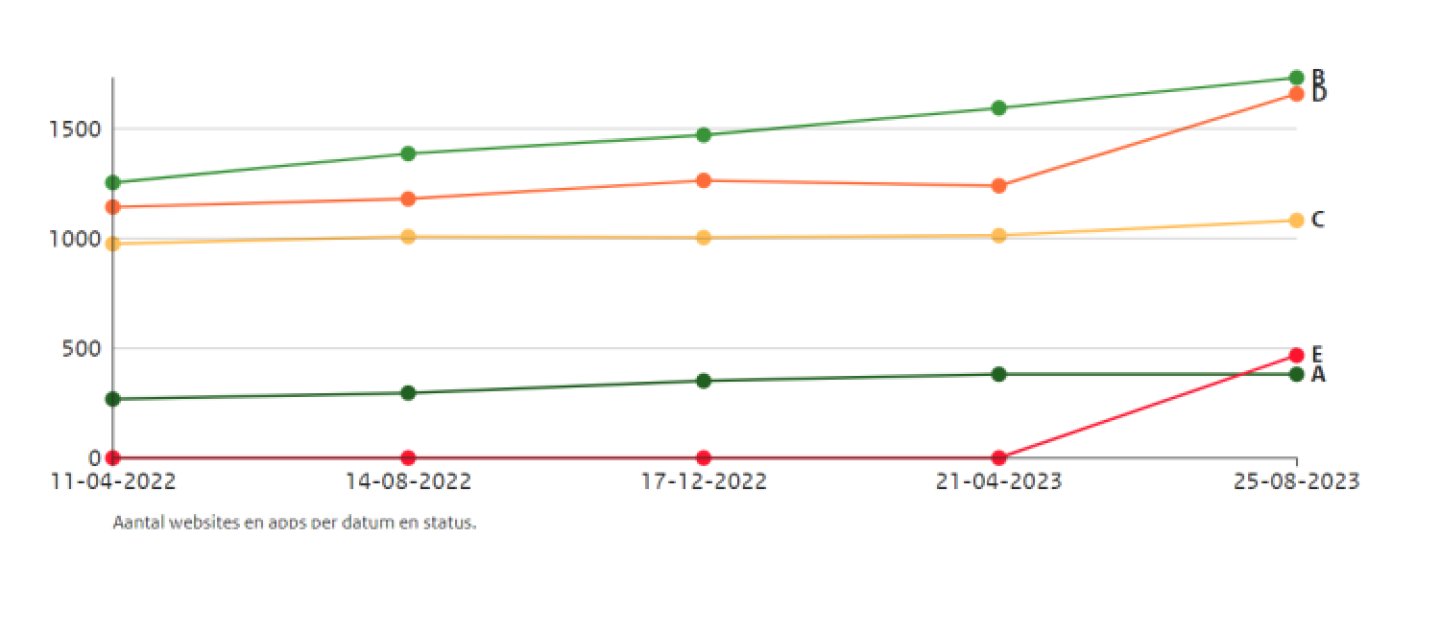 Sinds 2018 zijn overheden verplicht om een toegankelijkheidsverklaring voor elke site en app te hebben. De ‘score’ van een app of site op het dashboard, A t/m D, is gebaseerd op het verklaringenregister. Alleen status A betekent dat de site of app voldoet aan alle wettelijke eisen voor toegankelijkheid. Status A, B en C zijn toegestaan, mits overheden jaarlijks voortgang boeken met het voldoen aan de wettelijke richtlijnen.