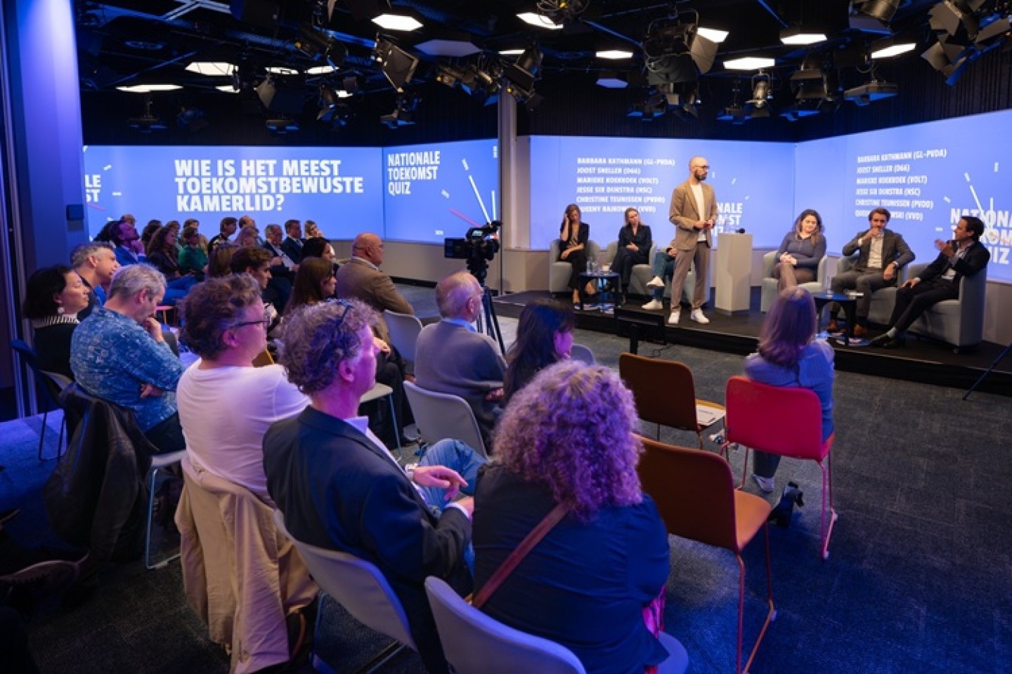 De toekomst verdient een vaste plek aan tafel. De Tweede Kamer moet besluiten nemen die niet alleen op korte termijn populair zijn, maar die ook recht doen aan de uitdagingen van de lange termijn. Rudy van Belkom van Stichting Toekomstbeeld der techniek organiseerde daarom 30 september jl. de Nationale Toekomstquiz. Volt-Kamerlid Marieke Koekkoek kwam als winnaar uit de bus.