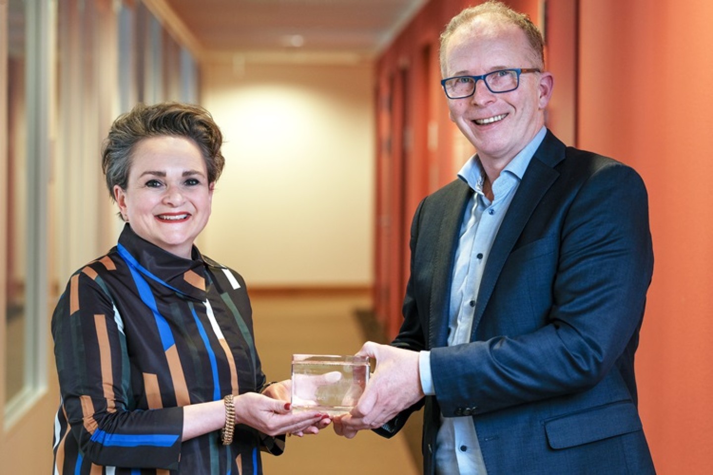 Alexandra van Huffelen ontving de award uit handen van Arnoud van Gemeren, hoofdredacteur van AG Connect en iBestuur