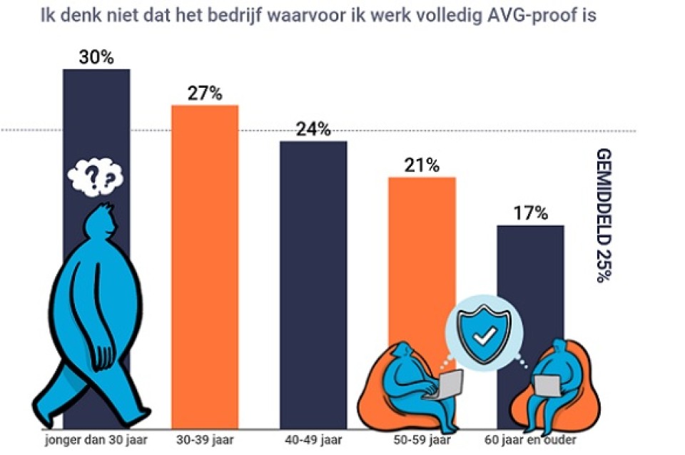 Mogelijk doordat werkende Nederlanders zelf losjes met de regels omspringen, stelt maar liefst een kwart van hen dat hun bedrijf op dit moment niet AVG-proof is. Opvallend genoeg zijn respondenten jonger dan dertig jaar (dertig procent) hierin kritischer dan vijftigplussers (twintig procent). Dit lijkt van invloed te zijn op de mate waarin Nederlanders hun werkgever vertrouwen. Zo denkt maar liefst veertien procent van alle ondervraagden dat hun gegevens niet veilig zijn bij de organisatie waarvoor zij werken. Baas: “Ondanks dat de AVG al drie jaar van kracht is, valt er op dit gebied voor veel Nederlandse organisaties nog een hoop te leren. Voor een juiste naleving van de wetgeving is het belangrijk dat het bedrijfsleven het goede voorbeeld geeft. Als een organisatie geen garantie kan bieden voor de veilige afhandeling van persoonsgegevens en andere privacygevoelige informatie, dan kan zij dat al helemaal niet van haar medewerkers verwachten.”