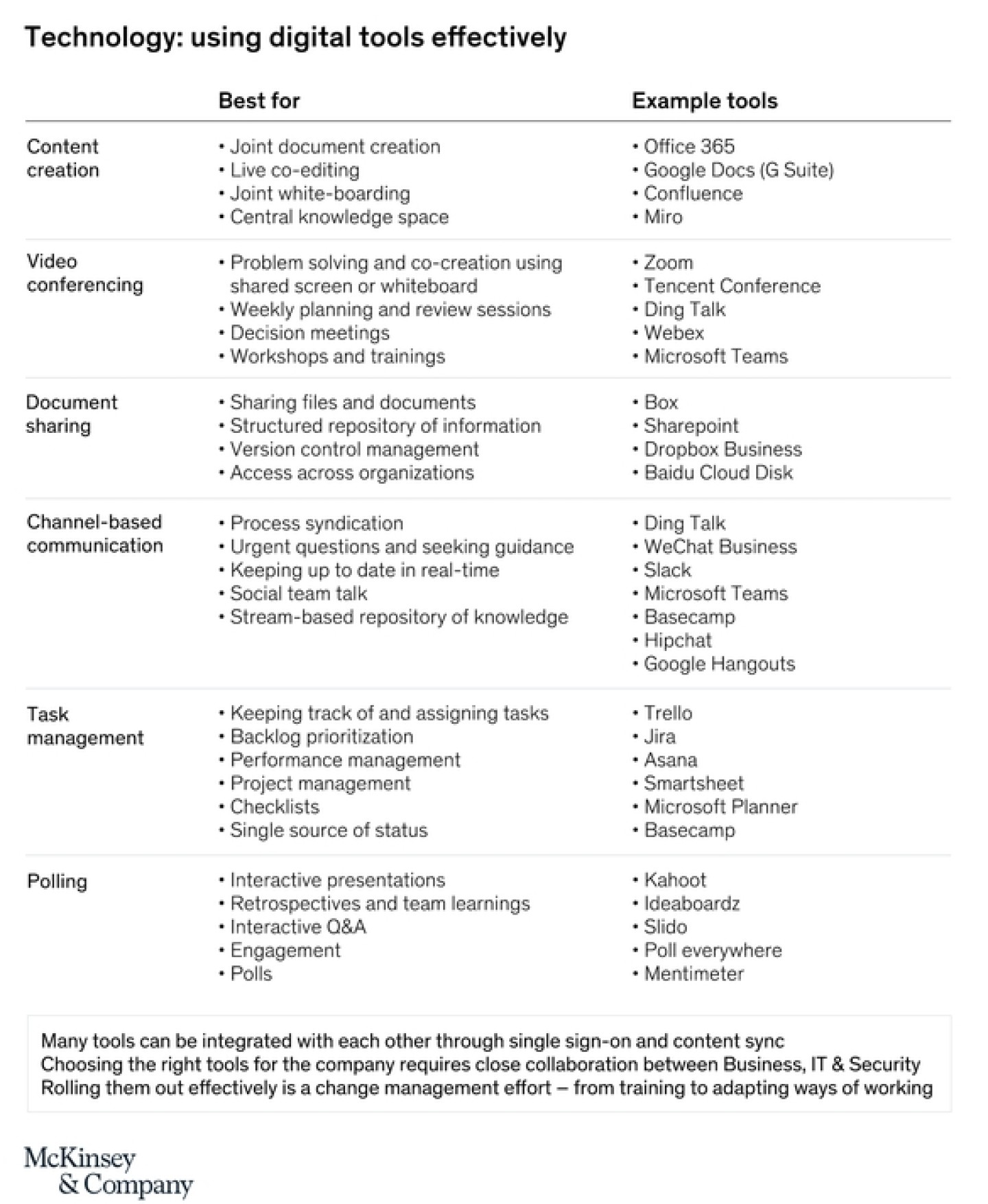 De services in de cloud tieren welig. De consultants van McKinsey hebben daar een mooi overzicht van gemaakt, wat waarvoor te gebruiken. Maar let op wat je deelt op deze platforms, want de zorgen om een cyber secure werkplek zijn ondertussen niet minder geworden. Daarom een aantal goede adviezen die ik hier voor je samenvat, los van wat jouw organisatie al beveiligd heeft in je werkomgeving. Ik ga ze niet in detail behandelen, maar je kunt dit als checklist gebruiken. En voor meer info heb je alle tijd thuis om dit uit te zoeken toch? Training on the job: