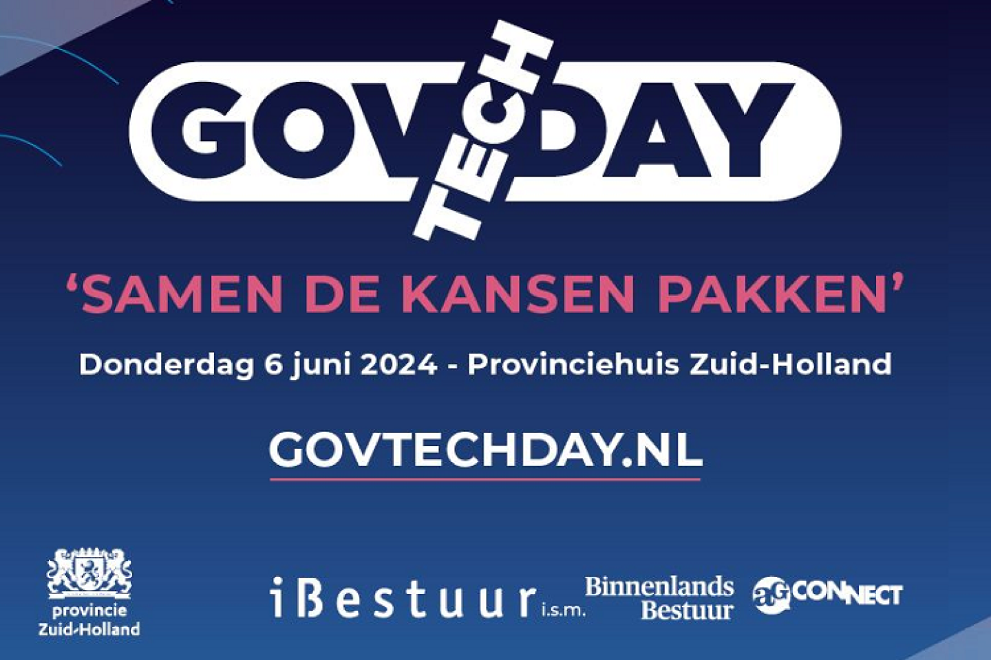 GovTech Day 2024 vindt plaats op 6 juni a.s. in het Provinciehuis Zuid-Holland in Den Haag. iBestuur brengt die dag wederom overheid, markt, startups en kennisinstellingen samen rondom het vakgebied GovTech. Een dag voor ambtenaren, bestuurders, beleidsmakers en innoavtors die zich bezighouden met het inzetten van technologie om maatschappelijke uitdagingen aan te gaan en de dienstverlening van de overheid aan burgers en bedrijven te verbeteren.