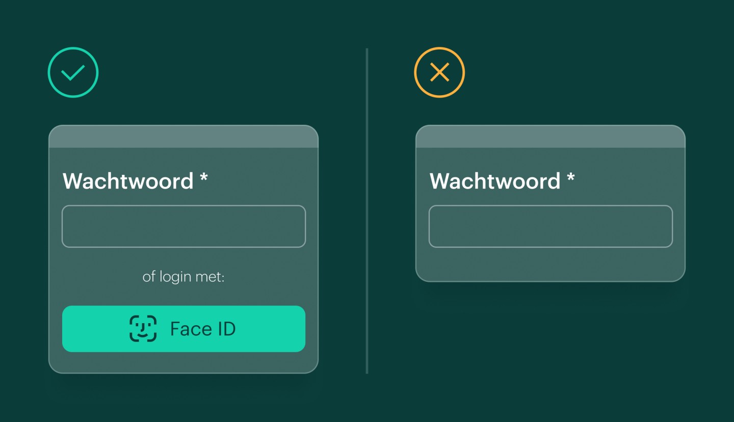 Probeer je gebruiker te ontzien van cognitieve inspanning. Dat kan bijvoorbeeld een alternatieve manier van inloggen zijn zoals gezichtsherkenning.