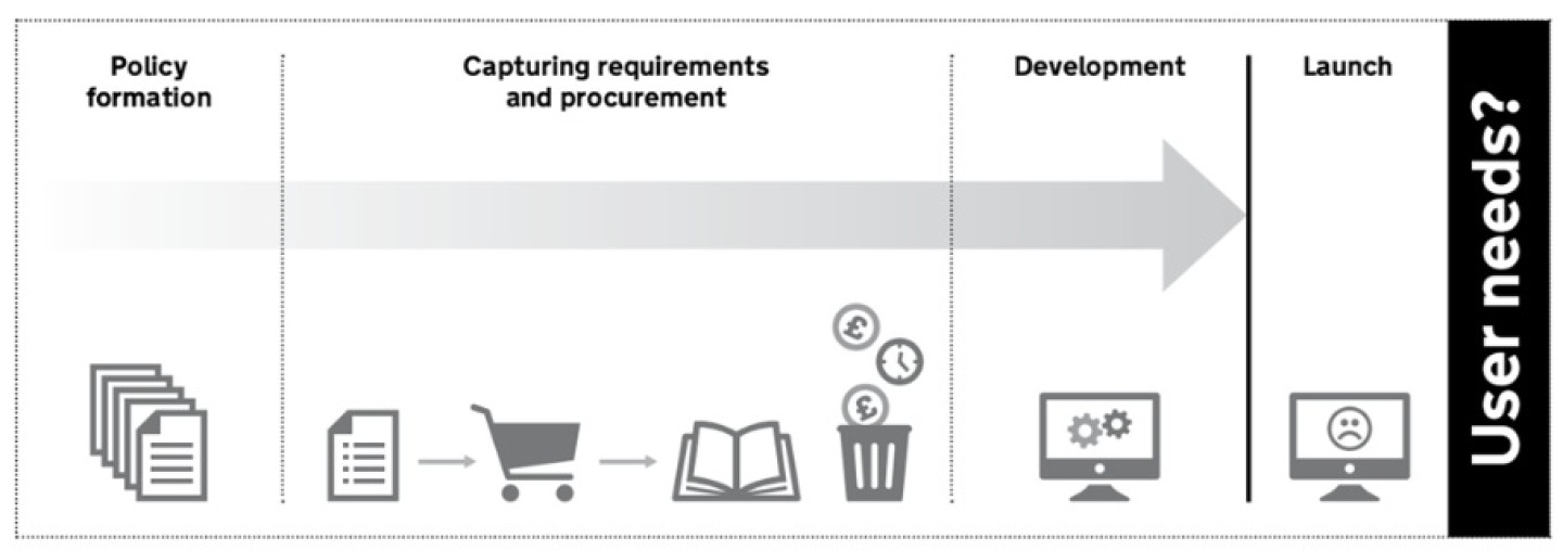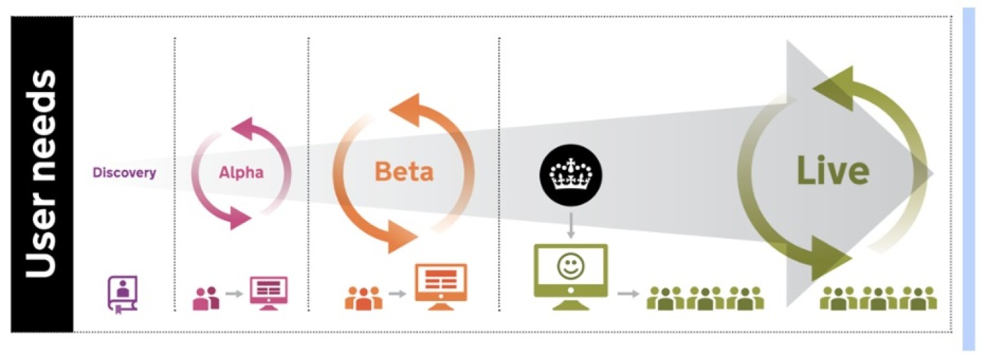 Een aanpak waarbij men eerst definieert wat de gebruikersbehoefte was. Waar was de gebruiker echt mee geholpen en hoe kan die waarde zo simpel mogelijk geleverd worden? Daarna toetst men of deze waarde geleverd wordt. En dus betekende dat na een oorspronkelijke verkenning dat een team van 14 mensen startte met de eerste versie van GOV.UK.
