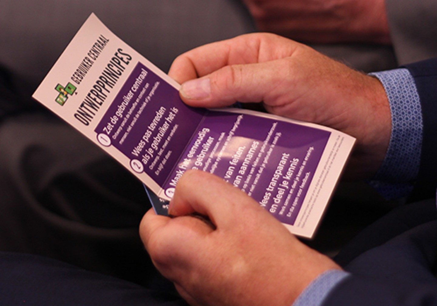Digicommissaris Bas Eenhoorn vertelt in zijn afsluitende betoog dat de Britse overheid 20 procent van het BNP uitgeeft aan dienstverlening. “Van die 20 procent is 60 procent vergeefs. Ik denk niet dat de cijfers voor de Nederlandse overheid er heel anders uitzien. Als we dus de dienstverlening verbeteren, door duidelijk te communiceren en mensen in staat te stellen om zelf veel digitaal te doen, dan kunnen we miljarden besparen. Het lijkt mij een heldere business case voor ‘de gebruiker centraal’.” Er is volgens hem nog “een wereld te winnen” als het gaat om overheidsdienstverlening. “Niet een wereld waarin overheid en burgers tegenover elkaar staan, maar een wereld waarin mensen goed worden geholpen door de overheid. Waarin mensen bijvoorbeeld zelf eigenaar zijn van hun medische gegevens, in een veilige omgeving. Voor die omslag kunnen we wel een paar ontwerpprincipes gebruiken.”