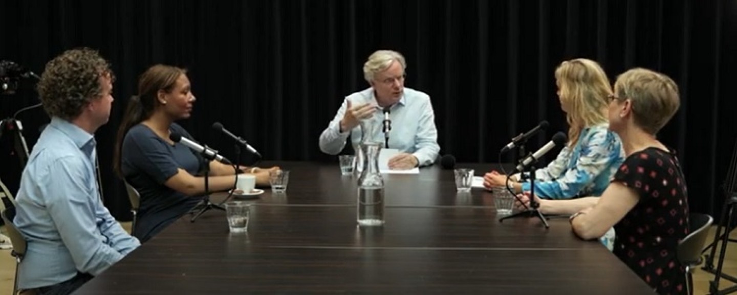 Aan de keukentafel: Barbera Veltkamp (Coördinerend wetgevingsjurist, Ministerie van Binnenlandse Zaken en Koninkrijksrelaties), Stan Basten (Plv.directeur/afdelingshoofd Beleid, Politiek & Strategie DG Toeslagen, Ministerie van Financiën), Won van Deursen (Business analist, Immigratie- en Naturalisatiedienst, IND) en Ivar Timmer (Lector Legal management & Technology, Hogeschool van Amsterdam).