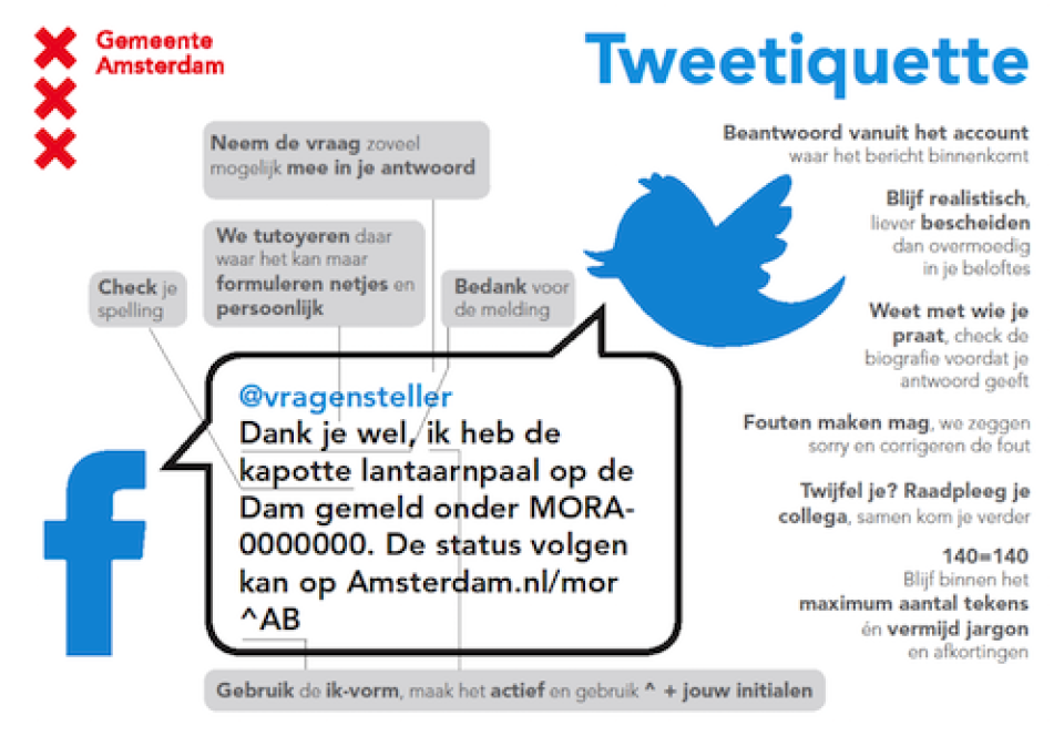 “Met webcare luisteren we naar de stem van de stad, want we monitoren wat er over Amsterdam wordt gezegd op social media. In die zin is webcare een instrument voor een breder doel, namelijk om een responsievere overheid te worden. Om een veel opener contact met burgers te hebben. Het contact tussen webcare, en ook onze andere dienstverleningskanalen, en de achterliggende organisatie is goed als het gaat om de uitwisseling van informatie. Maar we zijn nog niet zover dat de feedbackloops werken – we zijn dit jaar bezig om deze goed in te richten. Zodat wat burgers ons vertellen aan suggesties voor verbeteringen of veranderingen op de juiste plek in de organisatie terechtkomen en wij die burger kunnen vertellen wat er met hun suggestie is gebeurd.”